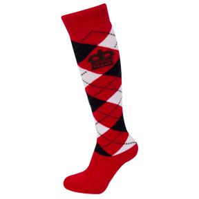| | Reithose in rot mit blauer Schrift und Kontrastnähten